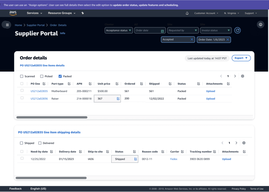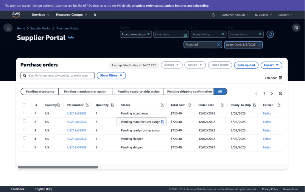 By creating a faster fulfillment and a consolidated view of all the order information, including item details, quantities, shipping addresses, and deadlines, it accelerated the fulfillment process and reduced risk. This also provided real-time visibility into the order lifecycle helping suppliers proactively manage potential issues, mitigating risks related to stock-outs, delivery delays, and non-compliance.